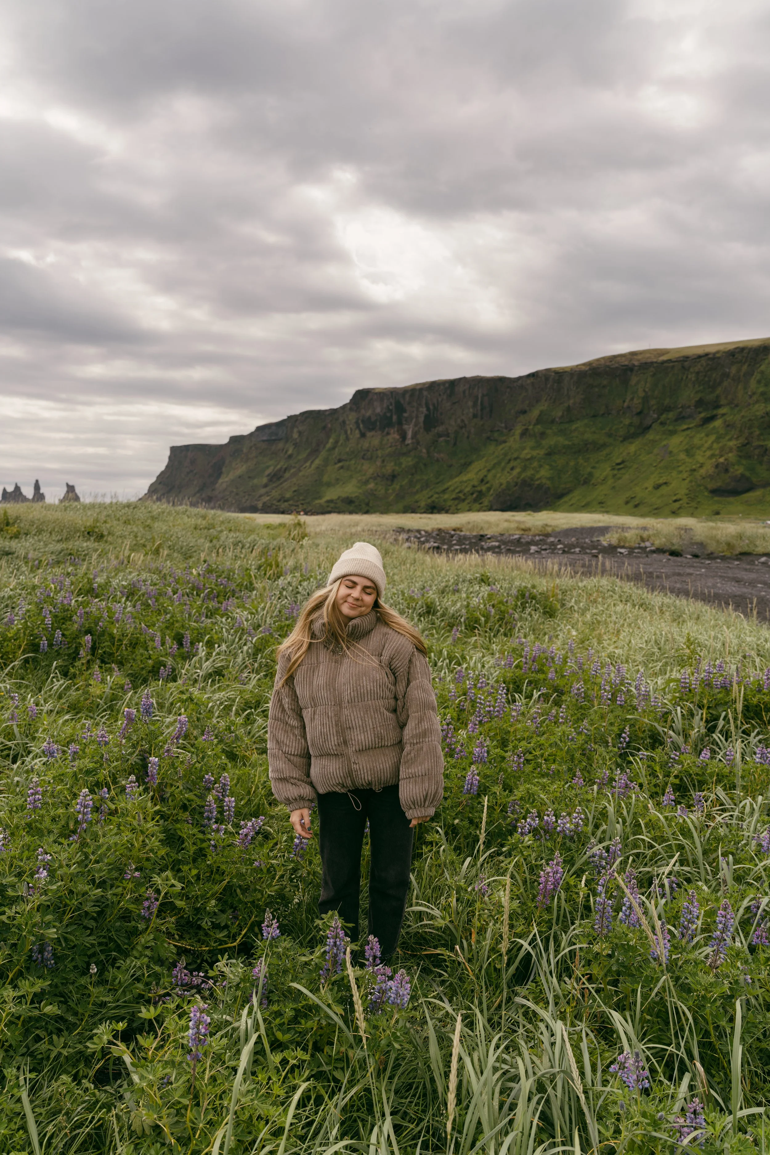 Reynisfjara Black Sand Beach. One of Iceland’s most famous black sand beaches, featuring smooth black volcanic sand, views of the legendary Reynisdrangar sea stacks, and the notable basalt columns that tower along the cliffs. This is an easily accessible location on the South Coast that naturally draws a lot of crowds. If you like the idea of a black sand beach but want a quieter location, I can share a few amazing alternatives!