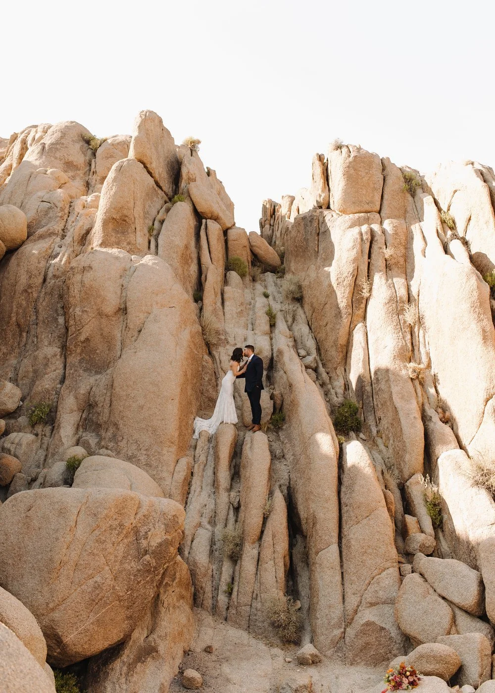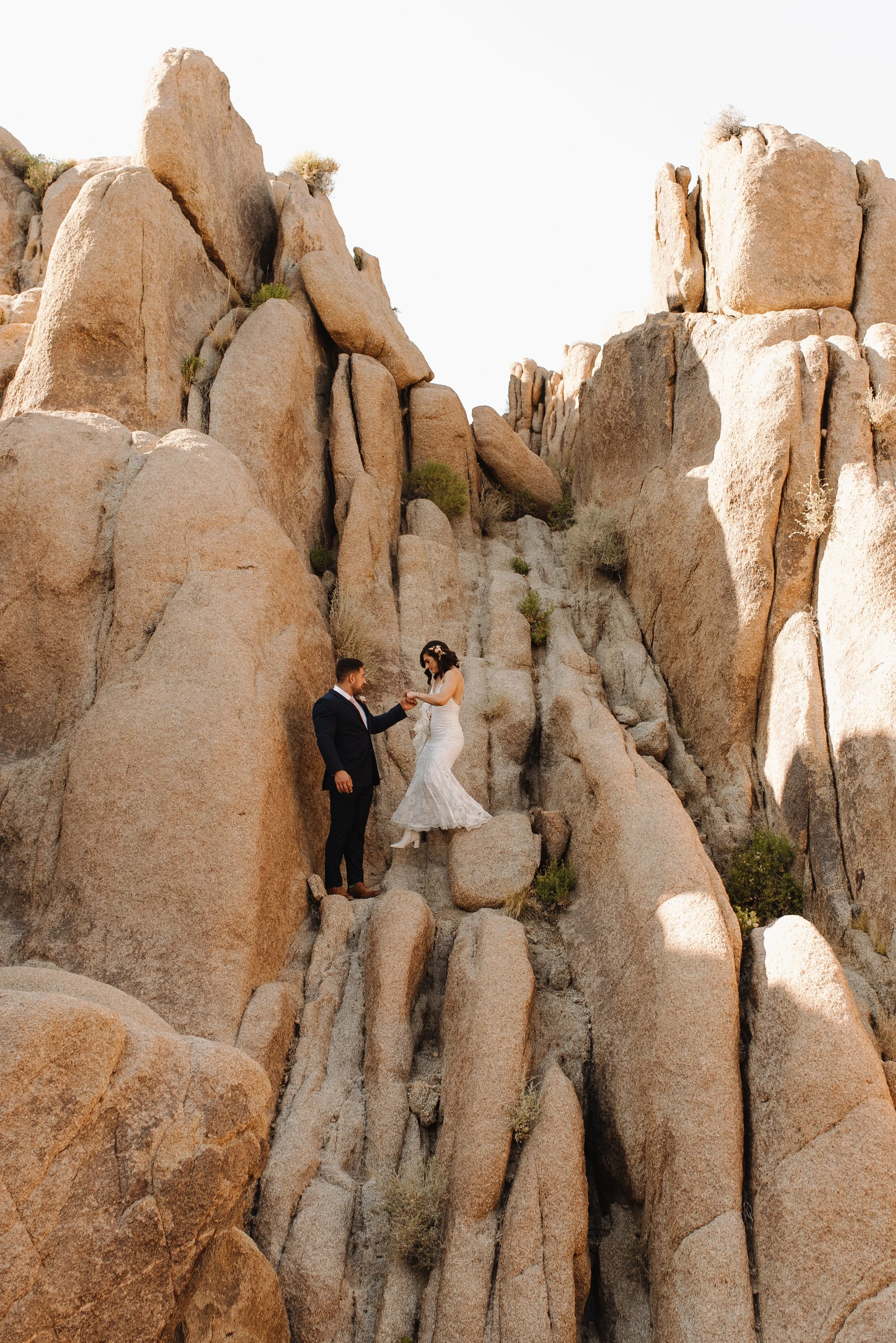 When deciding which date to choose for your Joshua Tree elopement you’ll want to consider things like the weather, crowds, and your ideal ceremony location in the park. Joshua Tree is a desert so summers here can be very HOT - this is especially important to keep in mind if you plan on having any guests at your wedding. The times of the year with the nicest weather will be Spring (March through May) and fall (September through November) so naturally, these will also be the busiest times of the year in the park. For this reason, I highly recommend choosing a Monday through Thursday or Sunday date for your elopement. Fridays and Saturdays will be very crowded with weekend visitors and campers, making it harder to find an intimate spot for your ceremony (and parking, of course).